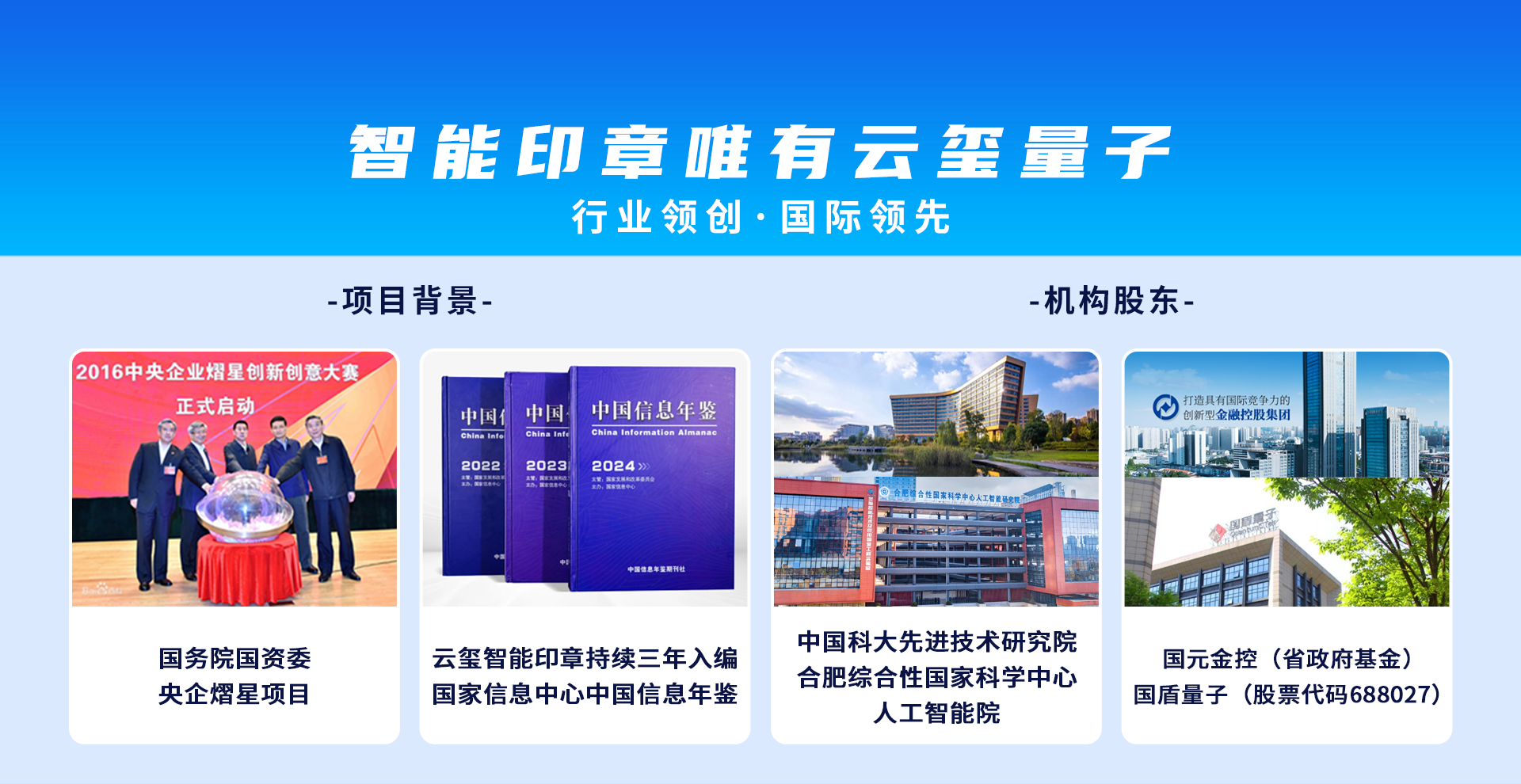 云璽量子是合肥市量子信息產(chǎn)業(yè)重點企業(yè),國家信創(chuàng)工委會成員企業(yè),中國信創(chuàng)500強企業(yè)。主營業(yè)務包括量子安全智能印簽、量子安全智能辦公、量子安全云服務,為政企客戶提供量子安全整體解決方案。