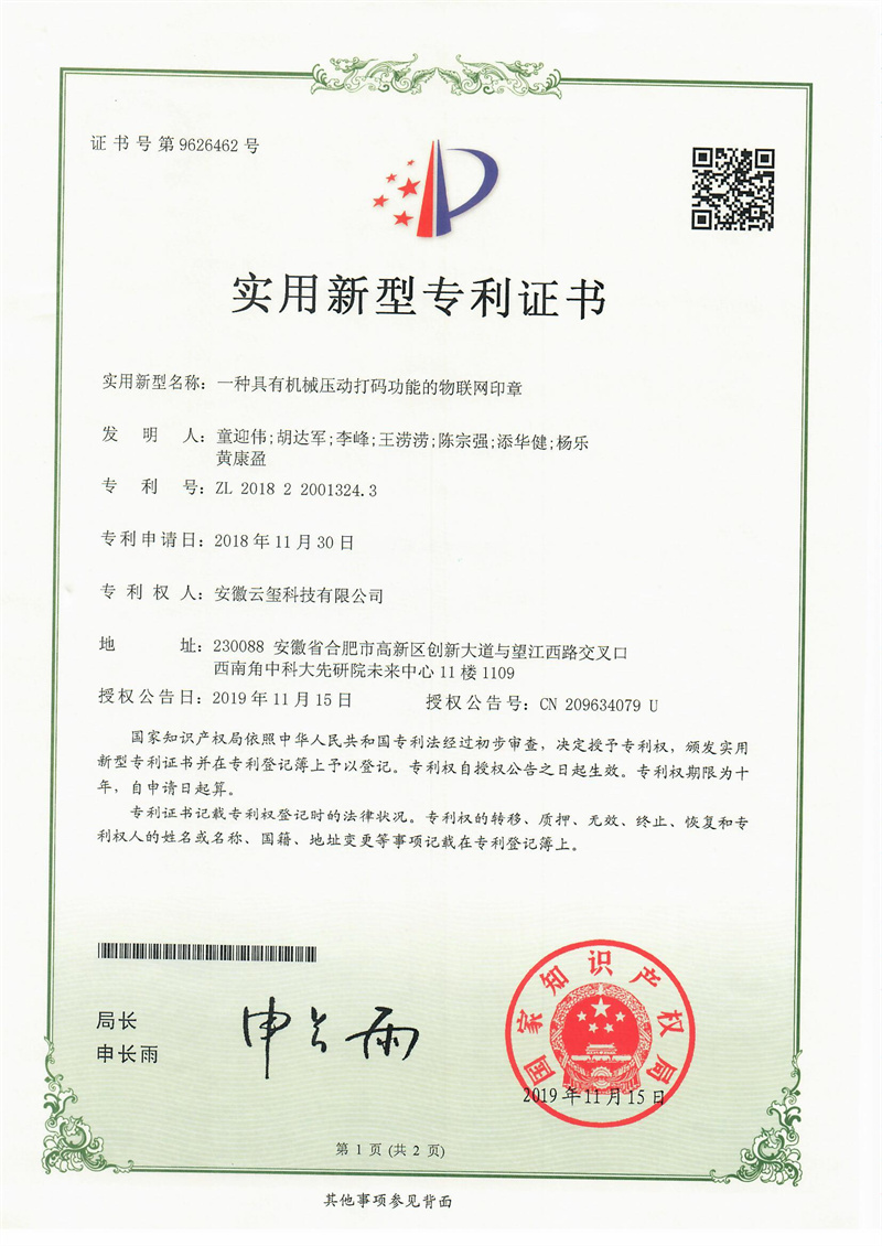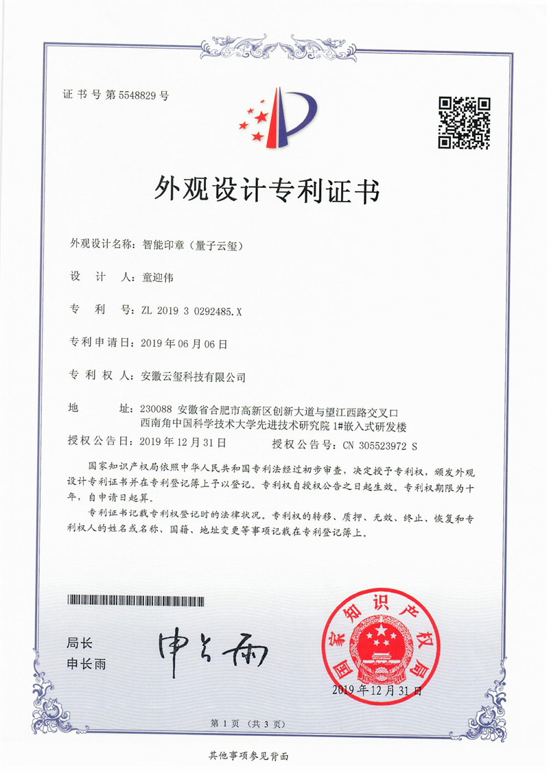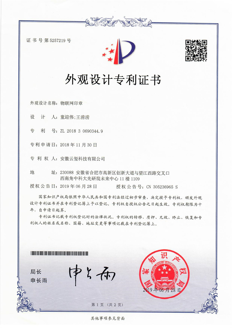 公司原創(chuàng)發(fā)明一體式智能印章技術,引領國內外新一代智能印簽創(chuàng)新變革。獲中日韓多項發(fā)明專利,徹底解決了實體印章和電子印簽管控的社會難題,獲國務院國資委全國央企熠星二等獎。公司聯(lián)合國家信息安全產(chǎn)品認證中心、公安部三所、信通院、中國印章協(xié)會等,主導起草了行業(yè)首個智能印章安全認證標準和智能印章產(chǎn)品標準,引領了智能印章行業(yè)發(fā)展。