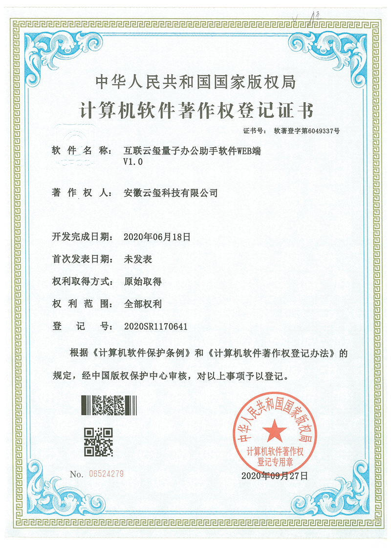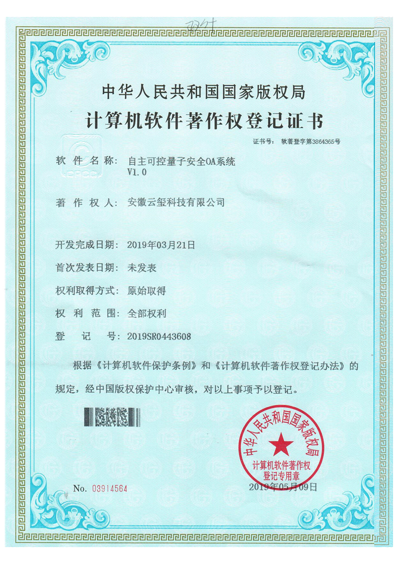 安徽云璽量子科技有限公司是合肥市量子信息產(chǎn)業(yè)重點企業(yè),國家信創(chuàng)工委會成員企業(yè),中國信創(chuàng)500強企業(yè)。主營業(yè)務包括量子安全智能印簽、量子安全智能辦公、量子安全云服務,為政企客戶提供量子安全整體解決方案。