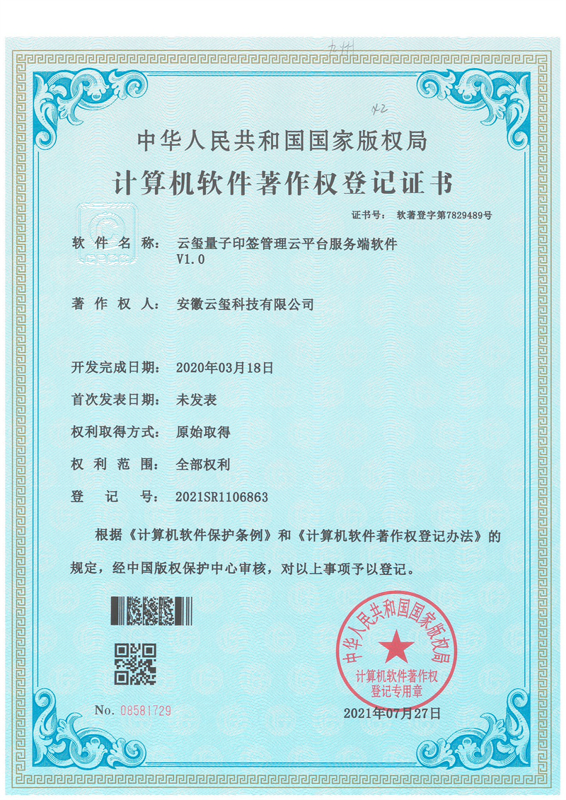 云璽量子印簽管理云平臺服務端軟件V1.0