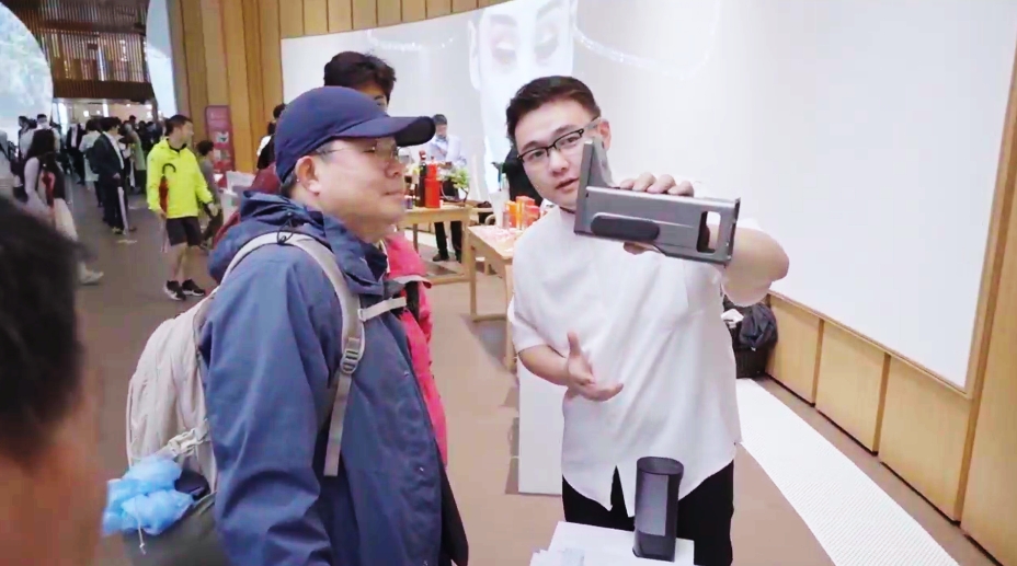 “別看我面前好像什么都沒有,但其實是虛擬桌面,只要穿戴設備,通過云電腦,隨時隨地都能實現(xiàn)加密辦公?!痹谖挥谠乒葎?chuàng)新園的“…